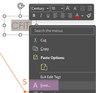 Expanding the letter spacing is a nice touch. Highlight the text, right‑click, and select Font.